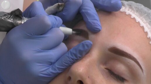 Профессиональный курс по перманентному макияжу Урок 12. Мастер-класс на модели - растушевка бровей