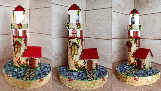 Красивая идея из переработанных материалов своими руками / Маяк из картона
