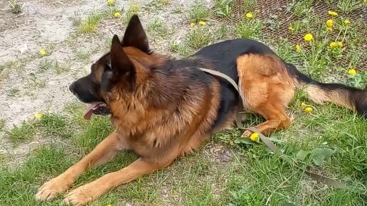 Далее: Овчарка хочет побежать к детям и принять участие. Очень интересная движуха.