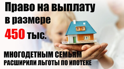 Внимание: Многодетным расширят льготы по ипотеке , компенсации в размере 450 тысяч рублей.