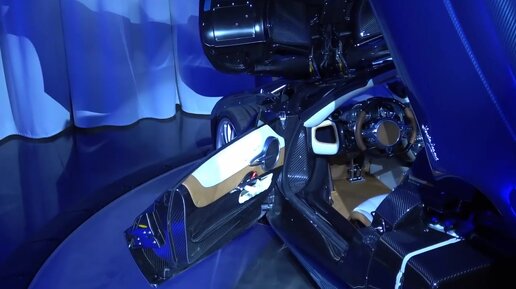Родстер Pagani Huayra ТАНЦУЕТ с синим ЗВЕРЕМ из углеродного волокна в Pagani Miami