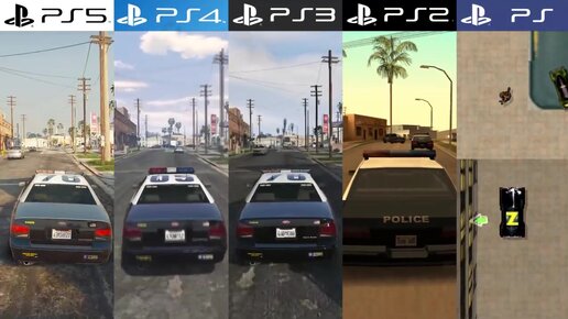 Сравнение графики в ГТА на PS5, PS4, PS3, PS2 и PS1