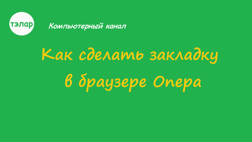 Как сделать закладку в браузере ОПЕРА