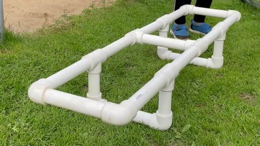 Спортивный снаряд из полипропиленовых труб. Попросил сына показать упражнения