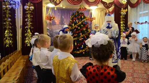 Веселая игра с Дедом Морозом на новогоднем утреннике в детском саду.