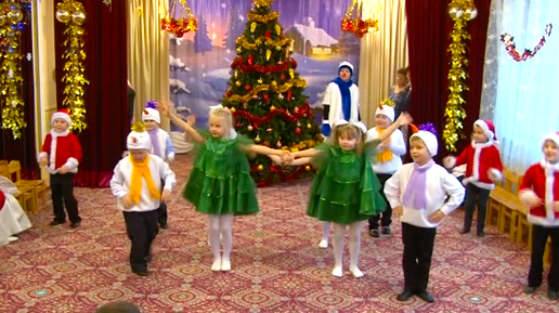 Весёлый танец снег и елки ледяные горки видео в детском саду