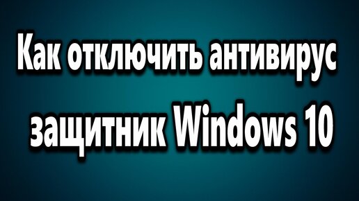Как отключить - включить защитник Windows 10