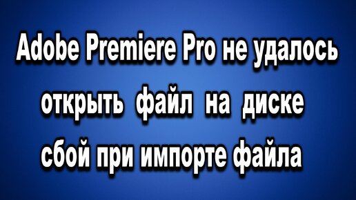 Adobe Premiere Pro не удалось открыть файл на диске, сбой при импорте файла