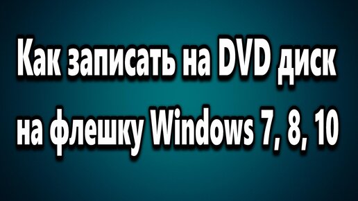 Как записать на Флешку, на DVD диск Windows 7, 8, 10