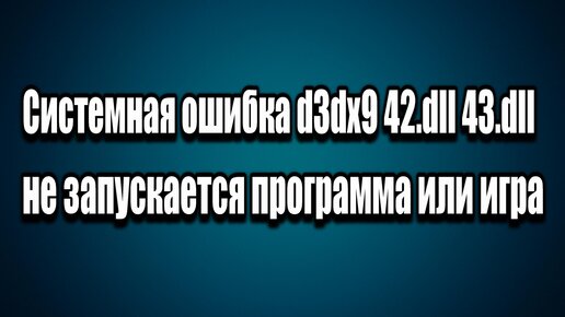 Системная ошибка d3dx9 42.dll 43.dll