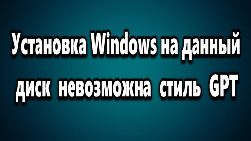 Установка Windows на данный диск невозможна. Выбранный диск имеет стиль разделов GPT