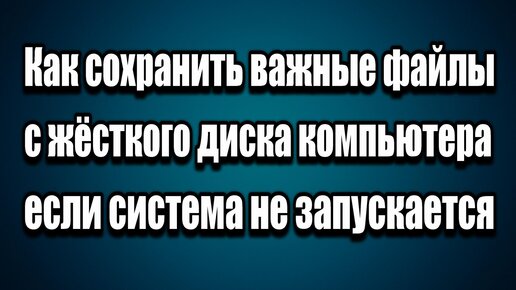 Как сохранить, скопировать, перенести важные файлы с жёсткого диска если система не запускается