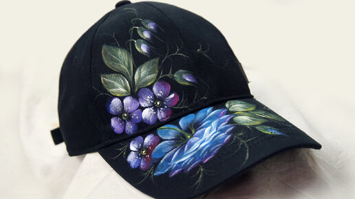 Ручная роспись кепки в жостовской технике. Художник Лариса Гончарова