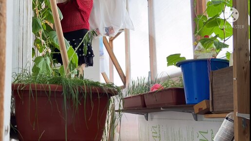 Мой огород на балконе. Огурцы растут очень быстро, надо делать подвязку по потолку