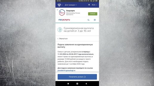 Как оформить выплату 10000 рублей на детей с 3 до 16 лет через Госуслуги
