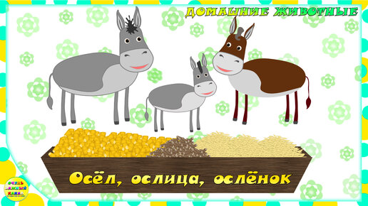 Учим животных: осёл, ослица, ослёнок! Развивающие мультфильмы о животных