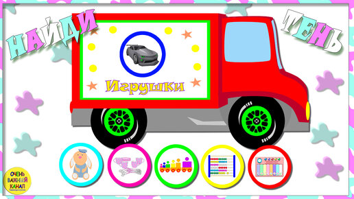 Машинки с игрушками, определи, чья тень! Развивающий мультик для самых маленьких