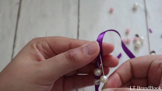 Симпатичный браслет из остатков ленты и бусин - делается за 5 минут и выглядит красиво