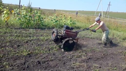 КОПКА КАРТОШКИ МОТОБЛОКОМ С ГРУНТОЗАЦЕПАМИ И ПРИЦИПНОЙ КАРТОФЕЛЕКОПАЛКОЙ.