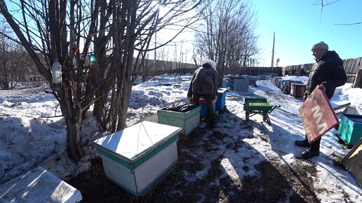 ВЫСТАВКА ПЧЁЛ ИЗ ЗИМОВНИКА НА ТОЧЁК, ОКОНЧАНИЕ ЗИМОВКИ ПЧЁЛ В ОМШАННИКЕ.