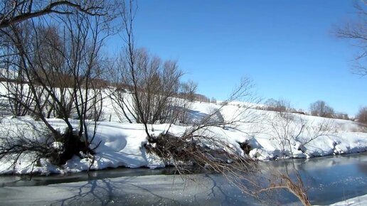 Прогулка вдоль реки на лыжах по насту по бобровым и заячьим местам.