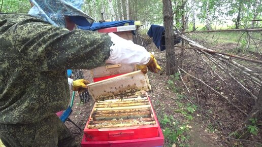 ОТБИРАЕМ МЁД У ПЧЁЛ, ПЧЁЛАМ НЕ КУДА СКЛАДЫВАТЬ МЁД, РАЗГАР МЕДОСБОРА.