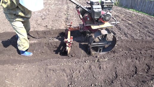 БЫСТРАЯ ПОСАДКА КАРТОШКИ МОТОБЛОКОМ В БОРОЗДЫ, ДВУХРЯДНЫЙ ОКУЧНИК С ГРУНТОЗАЦЕПАМИ.
