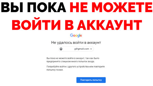 Вы пока не можете войти в аккаунт Гугл слишком много попыток входа