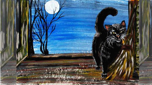 Нарисуем черного кота в избе, красками гуашь. Нарисуем черного кота краской, легко и просто.