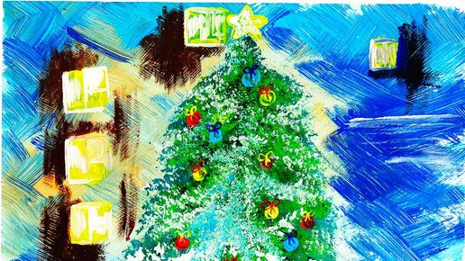 Как легко нарисовать новогоднюю елочку, поэтапно, красками гуашь. Рисуем Новый год красками.