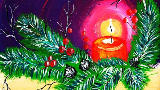 Как нарисовать Рождественскую свечу поэтапно, красками гуашь. Рисуем Новый год.