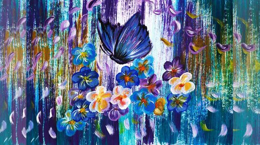 Как нарисовать бабочку в цветах, красками. Рисуем сиреневое настроение. Яркие картины гуашью. Лето красками.