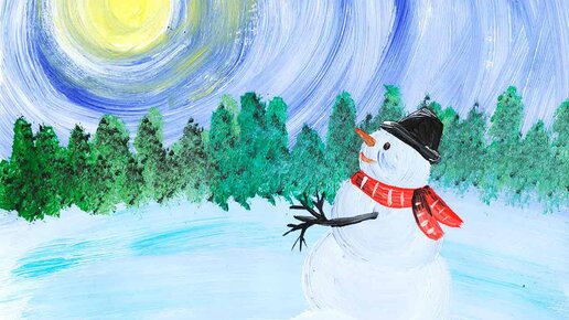 Как легко и просто нарисовать снеговика. Рисуем снеговика в лесу. Правополушарное рисование гуашью