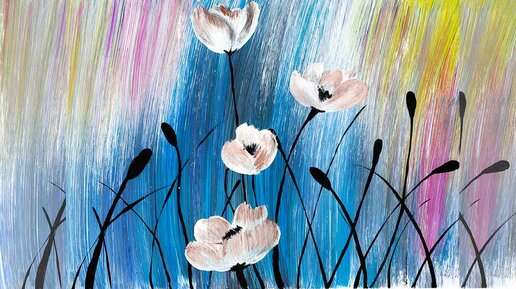 Нарисуй цветы гуашью, поэтапно. Нежная, интерьерная картина красками.