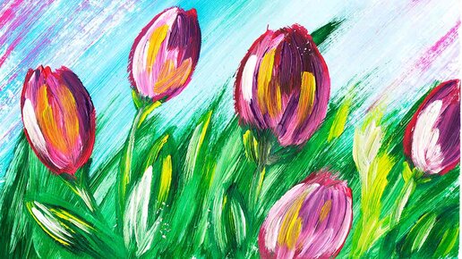 Тюльпаны красками легко и быстро. Первые цветы гуашью. Рисуем весну красками, поэтапно.