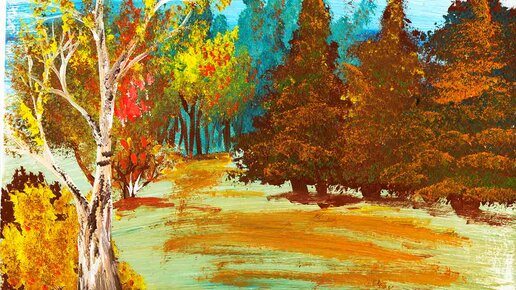 Как нарисовать осенний пейзаж, лесная опушка поэтапно. Рисуем гуашью осенний пейзаж.