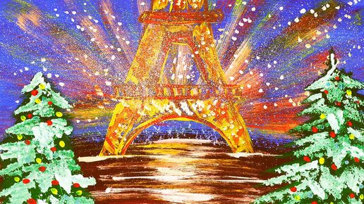 Мастер класс, рисуем Эйфелеву башню в Новогоднюю ночь, красками гуашь.