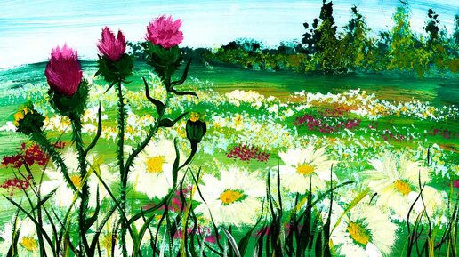 Нарисуем полевые цветы легко. Рисуем пейзаж гуашью.