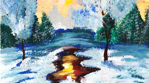 Зимний пейзаж гуашью. Легко и просто рисуем с детьми зиму