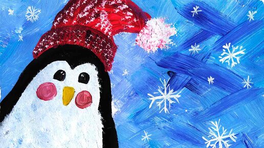 Нарисуй новогоднего пингвина с детьми. Рисуем Новогоднее настроение.