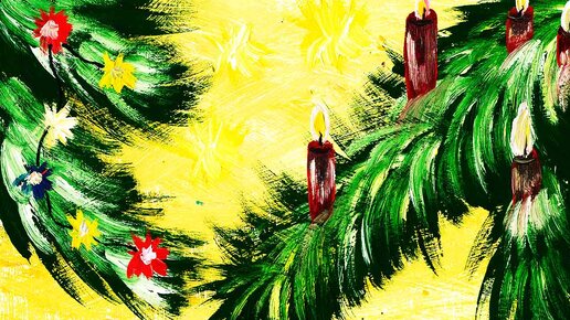 Мастер класс, рисуем новогоднюю веточку ели и свечи, красками гуашь.