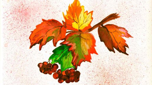 Как легко нарисовать веточку калины акварельными красками. Рисуем с детьми.