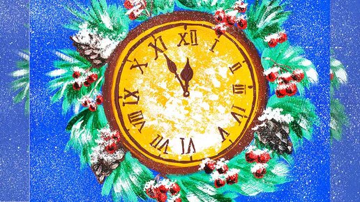 Нарисуем часы на новый год гуашью. Мастер класс, новогодние часы красками.