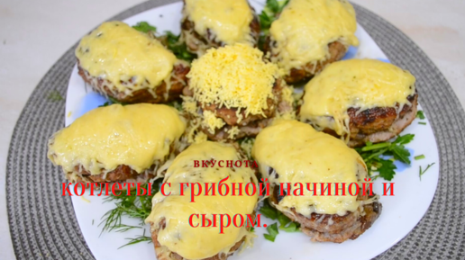 Вкусные котлеты с грибной начинкой с сыром.
