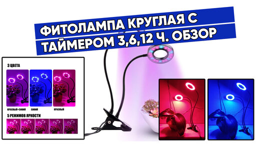 Фитолампа на прищепке с таймером на 3,6,12 часов.