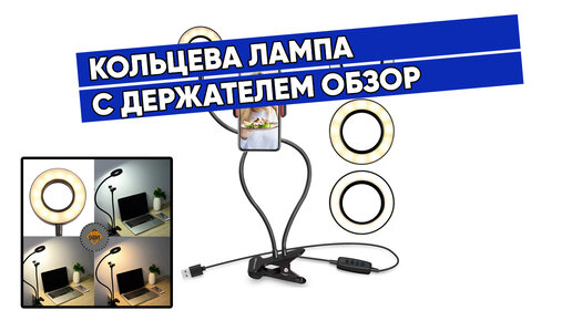 Кольцевая лампа на прищепке с гибким держателем для телефона