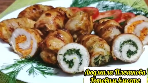 Как я делаю рулетки из куриной грудки (филе) с различными начинками без зубочисток и ниток