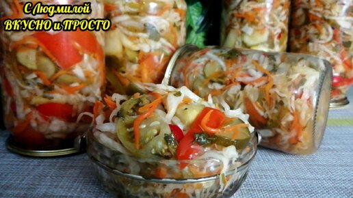 Популярный ОВОЩНОЙ САЛАТ на Зиму КУБАНСКИЙ | Салат на зиму из капусты, зелёных помидоров, огурцов, кабачков, болгарского перца...