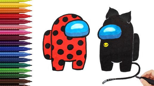 Как нарисовать ПРЕДАТЕЛЯ ИЗ ИГРЫ AMONG US | ЛЕДИ БАГ и СУПЕР КОТ | Раскраски для детей ❤