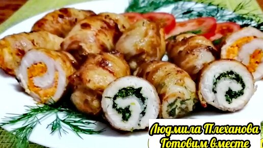 Как я делаю рулетки из куриной грудки (филе) с различными начинками без зубочисток и ниток